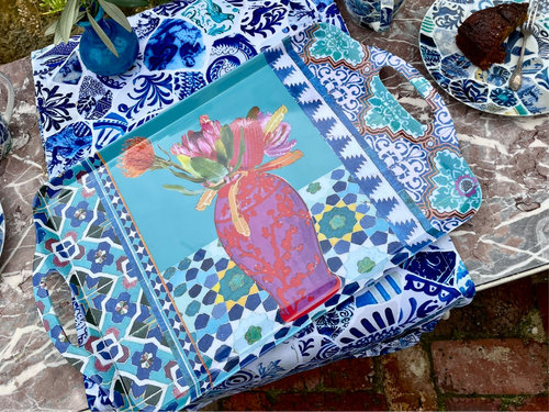 Tray Melamine Vase on Turquoise